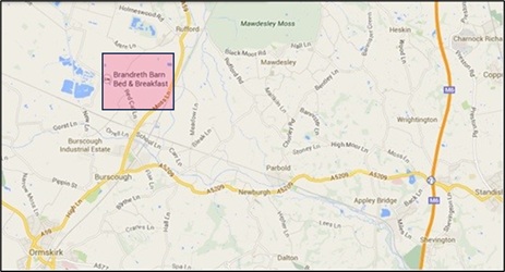There are three railway stations in close proximity to Brandreth Barn: Burscough Bridge Interchange is approximately 2 miles, New Lane is approximately 0.8 miles and Burscough Junction is approximately 3 miles.